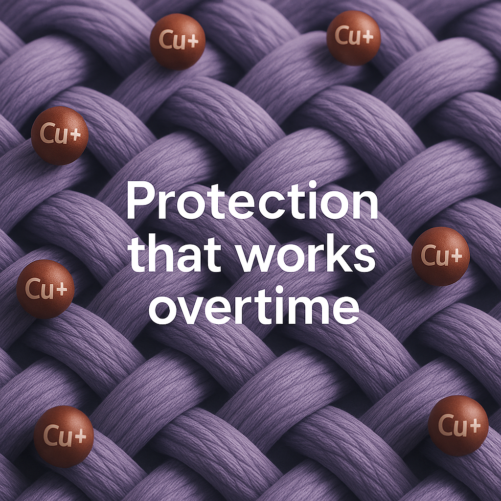 Our advanced Copper Medical™️ technology is infused DEEPLY into fabric bundles and attaches to every strand with 100% coverage. Our technology retains more copper ions than other copper yarns.